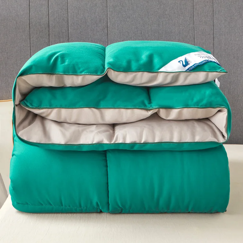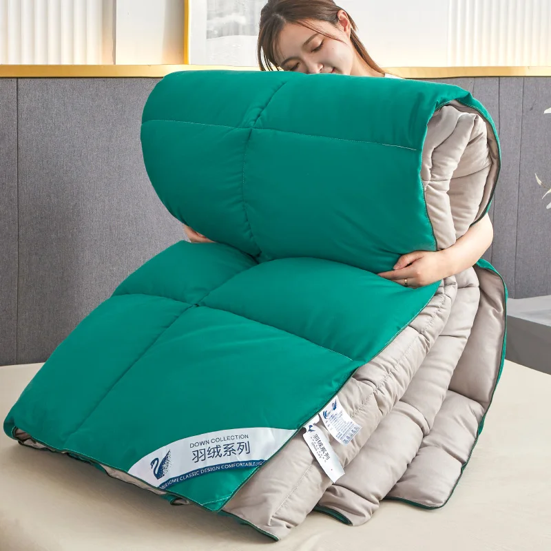 Fluffy Quilted Comforter Solid Green&Grey AB Side Goose Down Like Filling Duvet Light Weight Warm Winter/Autumn/Spring Thickened Blanket Full SIze Quilt Code 1pc Drop Shipping